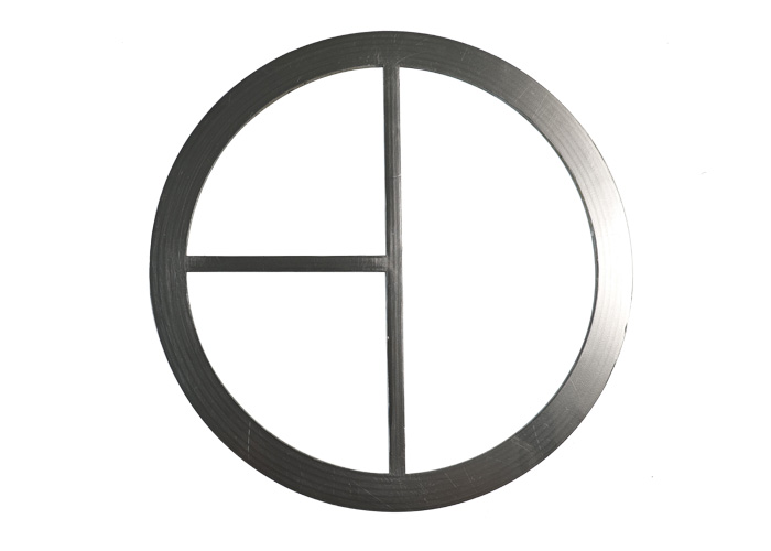金屬骨架加工成等距離、不相聯通的特殊形狀的同心圓溝槽,從而形成具有良好彈性的金屬骨架;金屬骨架的上下表面復合一層石墨帶狀密封墊片,最終構成整體復合墊片。